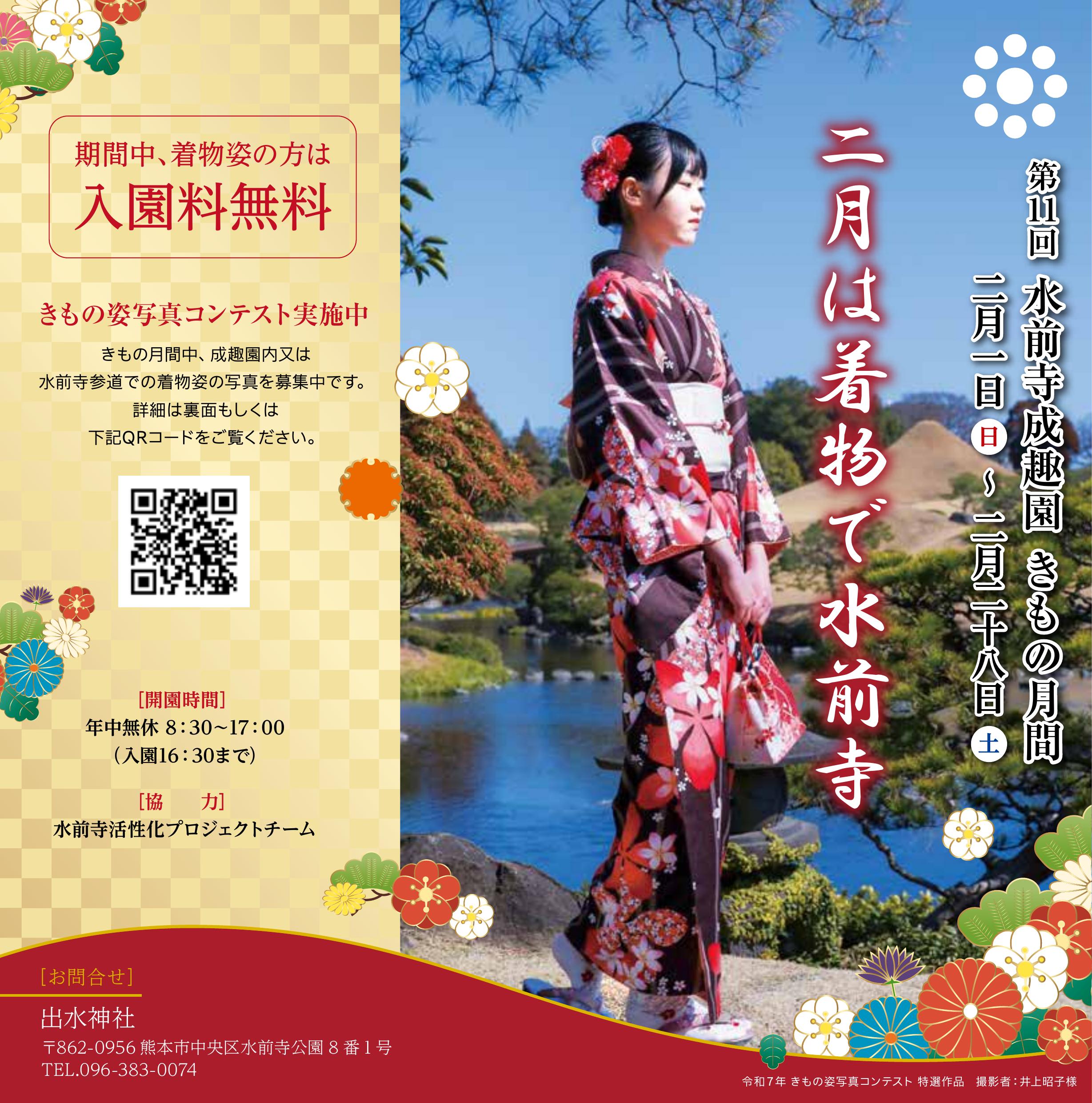 出水神社 は、水前寺成趣園内 内に鎮座し、熊本藩初代藩主・細川忠利公をはじめとする歴代の藩主を祀る神社です。古くから武運長久や家内安全の信仰を集める一方で、季節ごとの祭礼や伝統芸能の奉納など、さまざまな催しが行われ、熊本の文化や歴史を感じることができます。庭園と調和した静かな境内で、祈りの場として、時には催しを楽しむ場としても親しまれています。